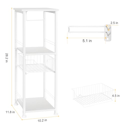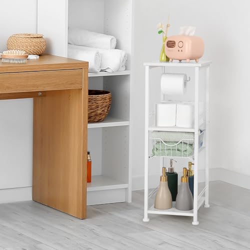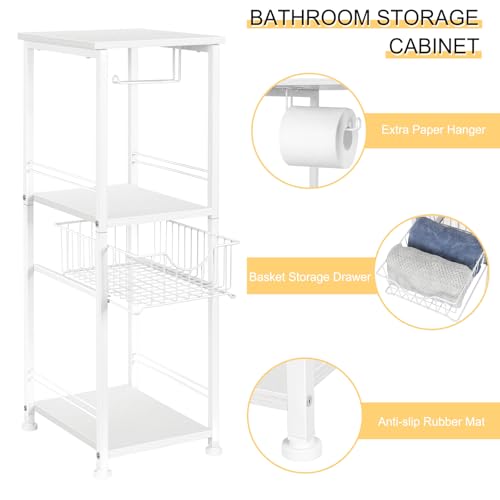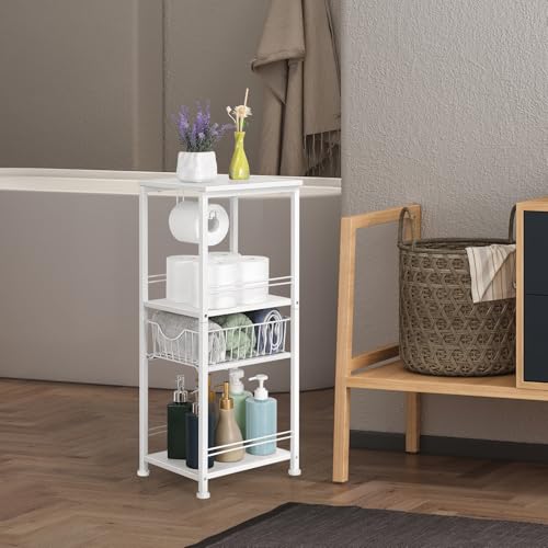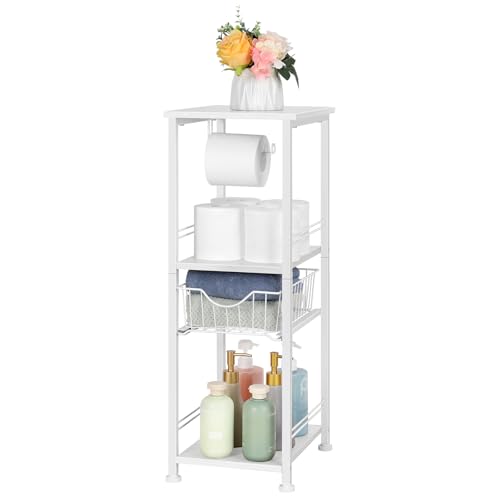 OYEAL - دولاب تخزين للحمام قائم بذاته، رف حمام بدرج، حامل تخزين ورق التواليت، منظم تخزين فوط الحمام بـ 3 أرفف لغرفة غسيل الملابس والمدخل ومخزن المطبخ من اويال، أبيض