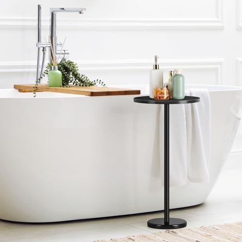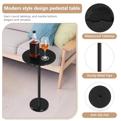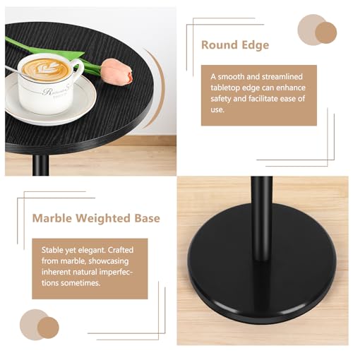 OYEAL - طاولة مشروبات سوداء صغيرة مستديرة بقاعدة جانبية مع قاعدة رخامية كوكتيل عصرية للفناء والاريكة والكرسي لون اسود من اوييل