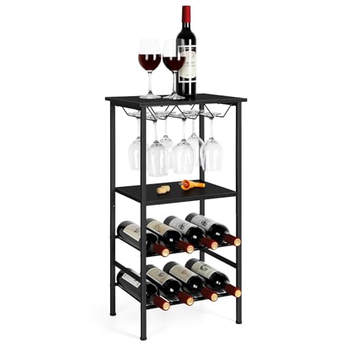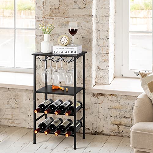 OYEAL - رف مشروبات قائم بذاته بسعة 8 زجاجات مع رف حامل للأكواب، خزانة مشروبات متعددة الوظائف مع مساحة تخزين للمطبخ وغرفة الطعام والمنزل وركن المشروبات من اويال، أسود