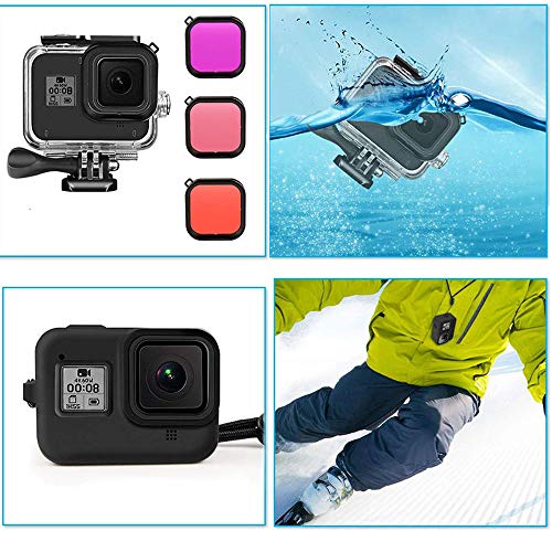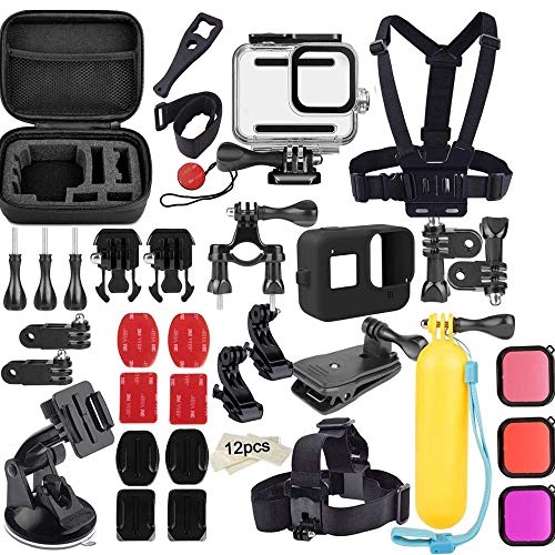 O Ozone - ملحقات أوزون 50 في 1 لمجموعة السفر جو برو هيرو 8 مع حقيبة حمل ، جراب سيليكون ، جراب مبيت مقاوم للماء ، فلاتر عدسات ، حشوات مضادة للضباب ، حوامل ، ملصق 3M لكاميرا جو برو هيرو 8