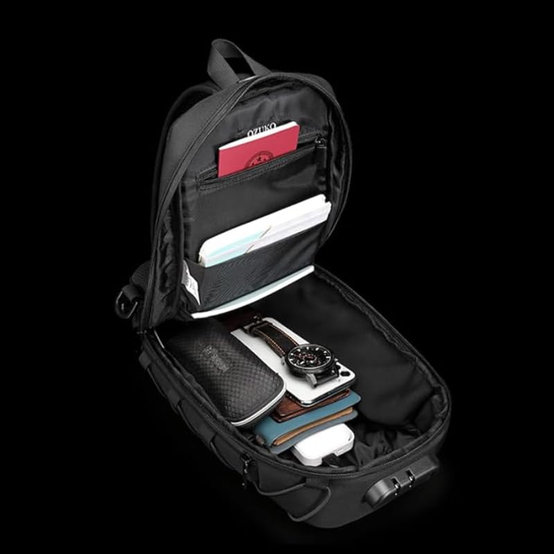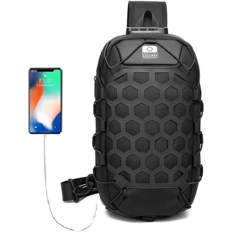 OZUKO - اوزوكو شنطة كتف كروس مقاومة للماء مع منفذ USB ذكي وتصميم مريح عملي للغاية للرجال 9357 - اسود
