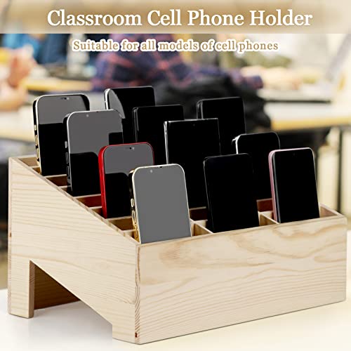 - تحديث المقاس: المقاس الكلي: 31 سم (طول)، 22 سم (عرض)، 17 سم (ارتفاع). مقاس كل فتحة: 9.5 سم (طول)، 2.2 سم (عرض)، 8.5 سم (عمق). تم تصميم كل فتحة في علبة الموبايل الخشبية للفصل الدراسي هذه لتكون كبيرة بما يكفي لاستيعاب مجموعة متنوعة من الموبايلات مع الحافظات.