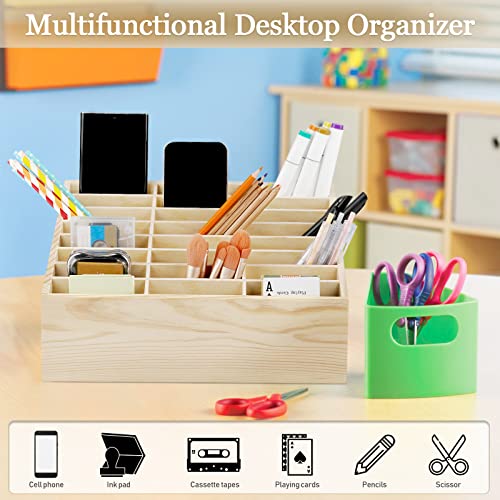 Ozzptuu - حامل موبايل للفصل الدراسي، صندوق تخزين الموبايل، منظم تخزين حبر خشبي متعدد للمدرسة والمكتب والمنزل من اوزبتوو (24 شبكة)