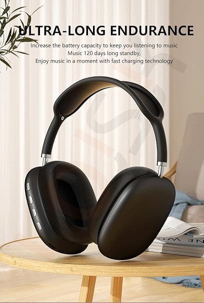 Generic - سماعات رأس لاسلكية P9 بتقنية البلوتوث، صوت ستيريو نقي، تدعم بطاقة الذاكرة، لون أسود (perforated)
