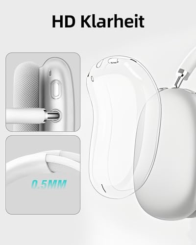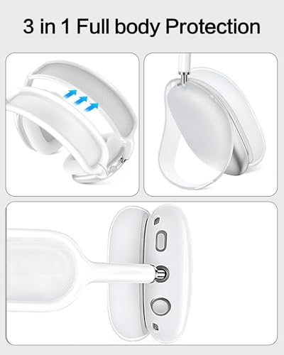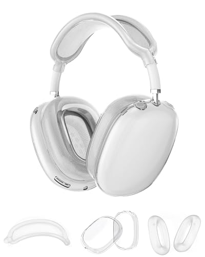 Pabbyeey - جراب حماية شفاف 3 في 1 مضاد للخدش والغبار لسماعات رأس آبل ايربودز ماكس، من البولي يوريثين المقاوم للحرارة مع أغطية واقية ناعمة لوسائد الأذن + غطاء شفاف + غطاء للسير العلوي من بابيي، لون شفاف