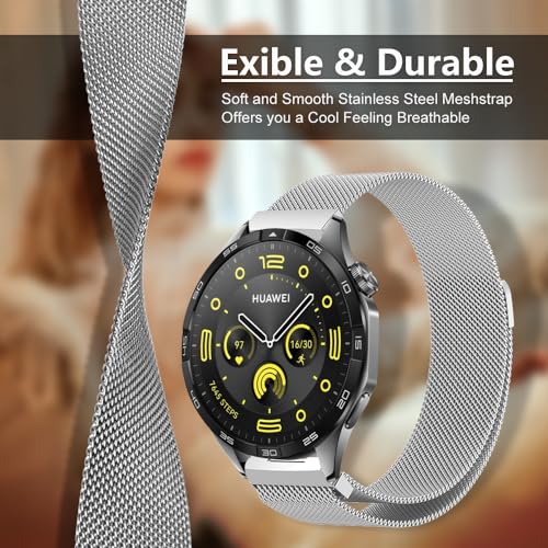 PaceBid - سوار 22 ملم من بيس بيد متوافق مع ساعة هواوي جي تي 4 46 ووتش برو بديل مغناطيسي الستانلس ستيل قابل للتعديل لساعة شاومي 2 اس 1 فضي ، للبالغين الجنسين