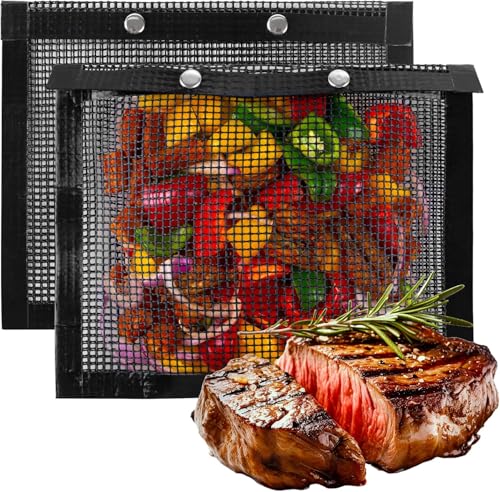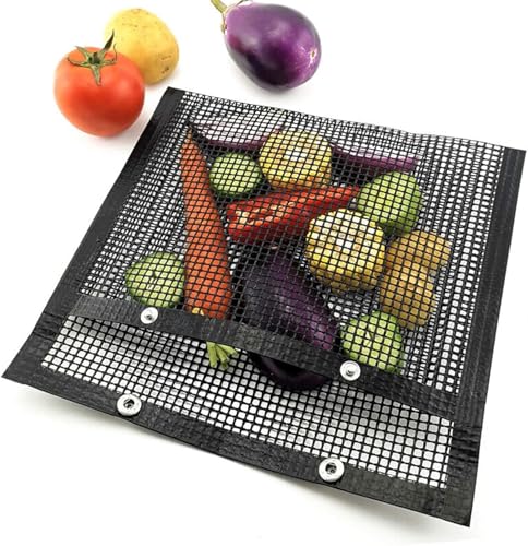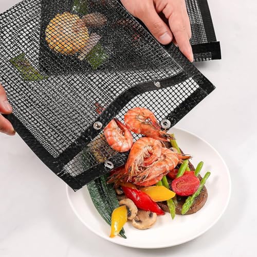 Generic - اكياس شواء شبكية قابلة لاعادة الاستخدام غير لاصقة مع زر كبس للفحم والغاز والشوايات الكهربائية، اكياس شواء الخضروات لطهي الخضروات واللحوم من قطعة واحدة