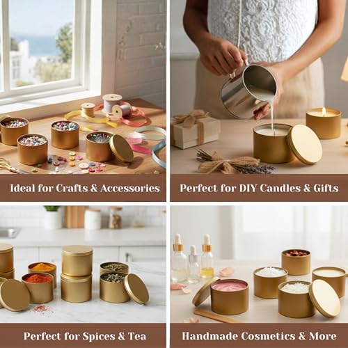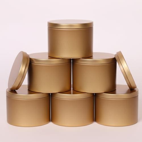 Generic - علب تخزين معدنية دائرية مع أغطية، حاويات متعددة الأغراض للسفر والتوابل والشموع والحرف اليدوية، 6 × 8 سم، سعة 150 مل (عبوة من 6 قطع، ذهبي)