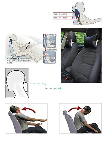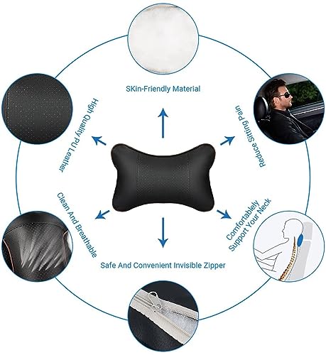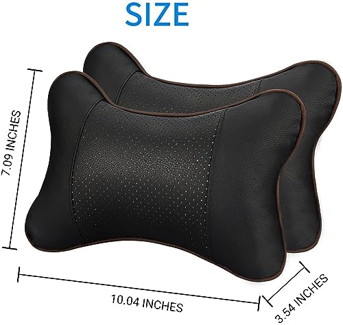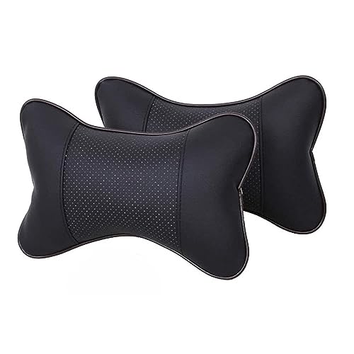 Sulfar - مخدة داعمة للرأس والرقبة مريحة وناعمة الملمس ومزودة بمسامات للتهوية لمقعد السيارة مناسبة للاستخدام في السفر والمنزل - قطعتان (أسود)، الجلد المدبوغ
