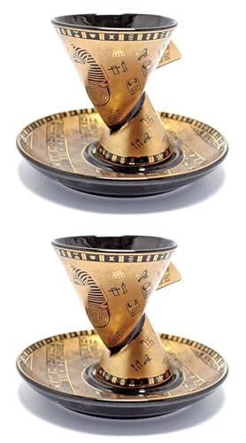 immatgar - طقم أكواب من إيماتجار فرعوني، مصنوع من الخزف، بتصميم فرعوني، بناء خزفي متين، عدد القطع: 2