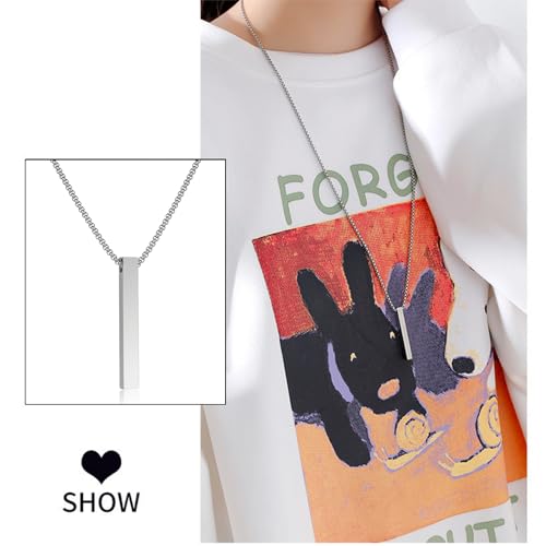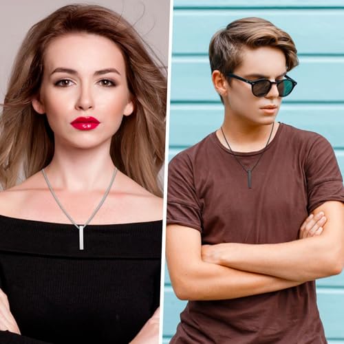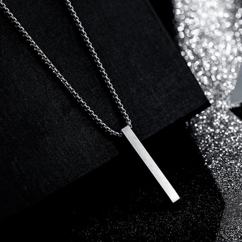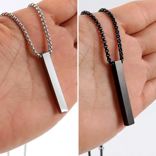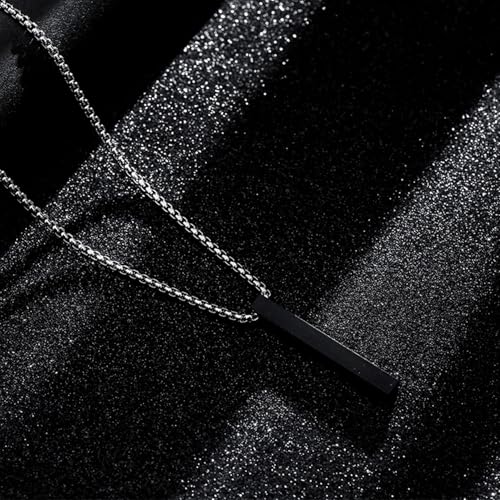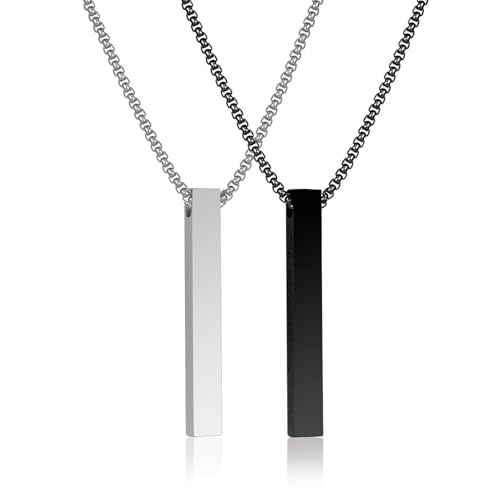 Oykrueats - مجموعة من 2 قلادات للرجال، سلاسل للرجال، سلسلة للرجال، سلسلة للرجال، سلسلة بدلاية للرجال، سلسلة شخصية للرجال، قلادة بدلاية على شكل بار، سلسلة مربعة مع قلادة مربعة (أسود + فضي)