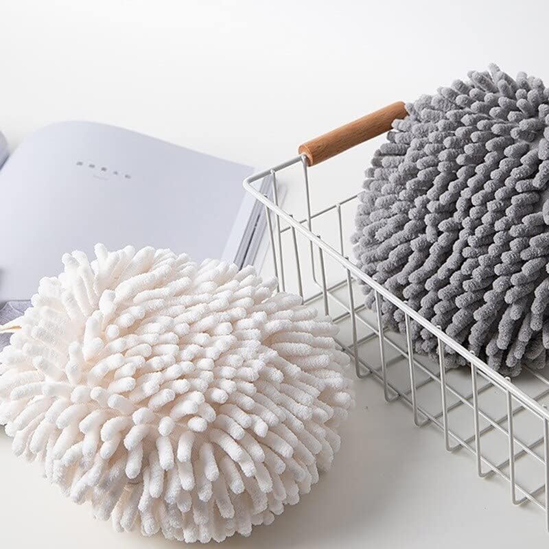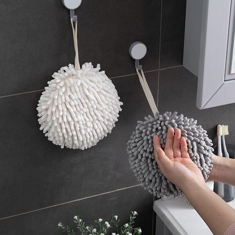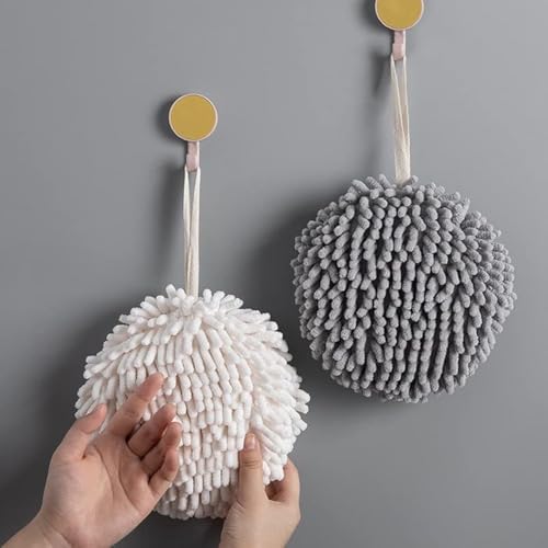 Spaceshoop - فوطة يد ناعمة من المايكروفايبر وقماش الشنيل مع حلقات تعليق بتصميم كرة سريعة الجفاف والامتصاص مناسبة للاستخدام في المطبخ والحمام مجموعة قطعتين Small مزيج القطن اوف وايت