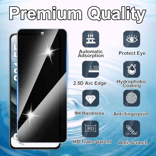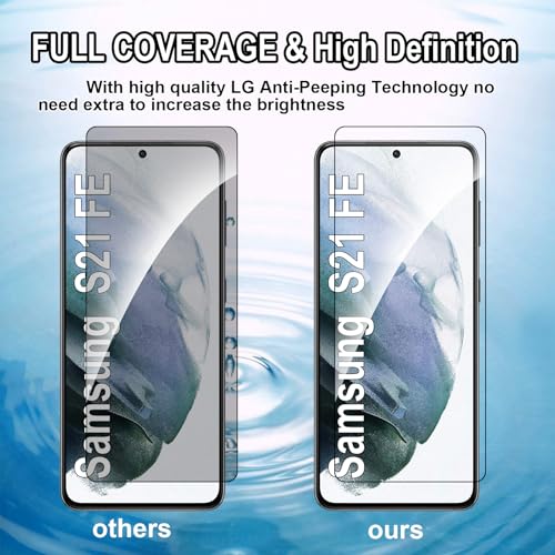 Hirshen - [عبوة من قطعتين] واقي شاشة للخصوصية لموبايل سامسونج جالاكسي S21 FE من الزجاج المقسى مضاد للتجسس، درجة صلابة 9، مضاد للخدش، خالي من الفقاعات، مضاد للتجسس