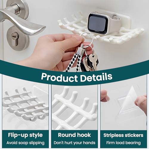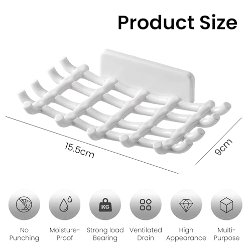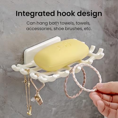 - تخزين بـ 13 خطاف: أكثر من مجرد حامل صابون: حول حافة حامل الصابون، 13 خطافًا مدمجًا صغيرًا يسمح لك بتعليق الأشياء اليومية بسهولة مثل القلائد أو ربطات الشعر أو إسفنجة الاستحمام أو الليفة أو مناشف الغسيل. طريقة عملية للحفاظ على منطقة الاستحمام مرتبة ومنظمة