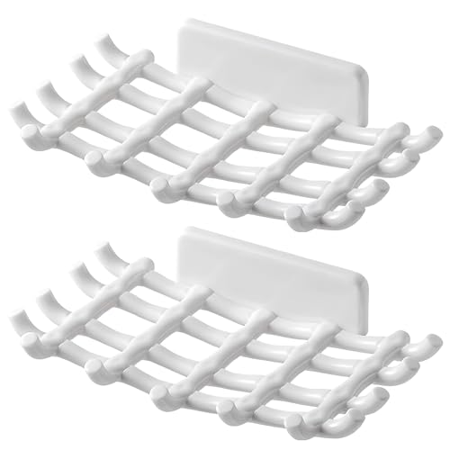 MYRLOFT - مجموعة من 2 طبق صابون، طبق صابون ذاتي اللصق مع تصريف، اطباق صابون بلاستيكية مع خطاف للحمام والمطبخ والدش (ابيض)