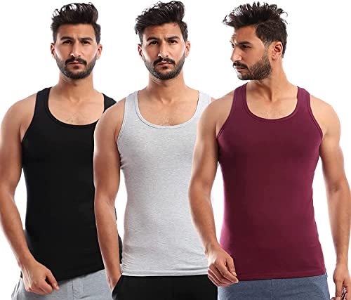Generic - مجموعة مكونة من 3قطع فانلة حمالة سبورت ليكرا ألوان متعددة للرجال