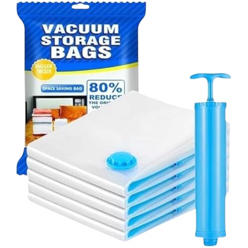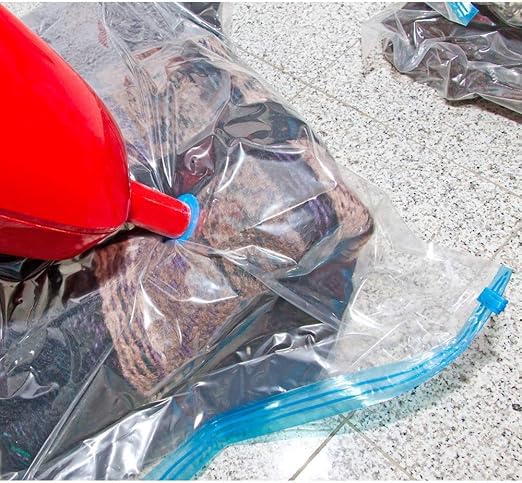 Happy Home - أكياس تخزين مفرغة من الهواء مع مضخة، أكياس بأحجام مختلفة (50 × 60 سم، 60 × 80 سم، 70 × 100 سم)، أكياس محكمة الغلق بتفريغ الهواء للبطانيات والملابس واللحاف، عبوة من 3 قطع.