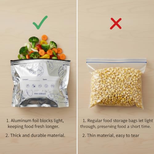 - [متعددة الأغراض وصديقة للبيئة] ليست مخصصة للتجميد فقط: هذه الأكياس جيدة بنفس القدر للتلميع (على سبيل المثال، الوجبات الخفيفة الجافة) أو التخزين في درجة حرارة الغرفة. بفضل إمكانية إعادة استخدامها، فهي أيضاً أكثر صداقة للبيئة من البدائل التي تُستخدم لمرة واحدة - ميزة مزدوجة.