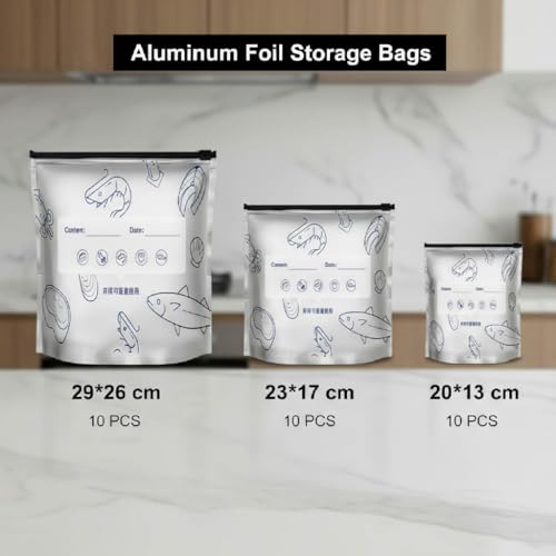 inkihuit - أكياس تخزين قابل لإعادة الاستخدام، أكياس تبريد محكمة الغلق، أكياس حفظ ألومنيوم مع سحاب، لتخزين البسكويت والحلويات والفواكه والخضروات واللحوم، عبوة من 30 كيس