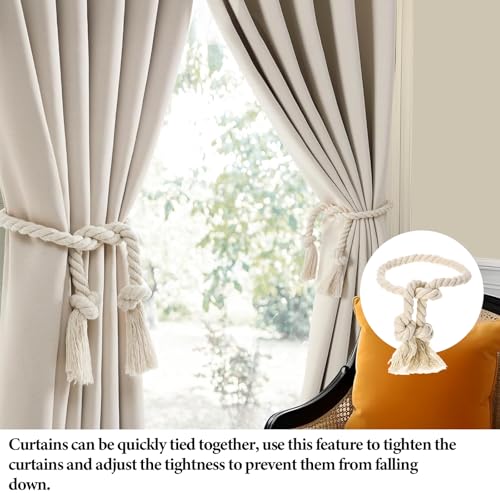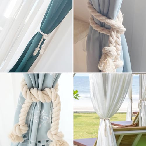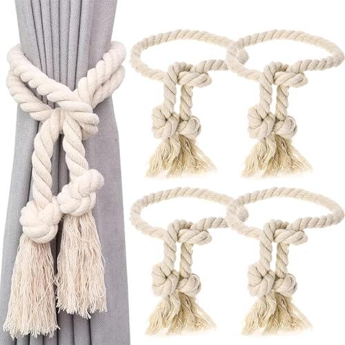 Dtoterul - أربطة حبال ستائر من القطن الطبيعي مصممة كمشبك حبل ستائر ورباط ستارة مصنوع يدويا وحبل قطني ورباط ستارة قطني ورباط ستارة من القطن للمنزل والمكتب، 4 قطع