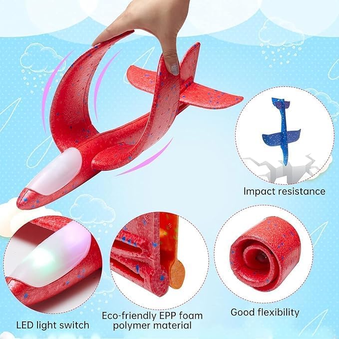 Generic - عبوة 6 قطع لعبة طائرة لإلقائها باليد من الفوم للأطفال مزودة بإضاءة ليد، لعبة طائرة مضيئة بدون محرك، نموذج طائرة فوم للأطفال