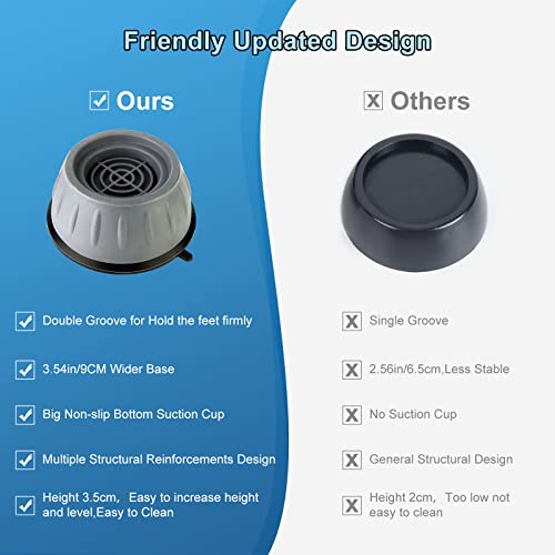 - [مضادة للانزلاق ومضادة للصدمات وبدون ضوضاء]: يزيد تصميم الأخدود من الثبات، كما أن الدعامات بفضل قاعدة التثبيت بالشفط العريضة تمنع الحركة وتوفر الحماية للأرضية. يعمل الدعم الواسع على تثبيت الغسالة لتقليل الاهتزاز والضوضاء. تعزل الوسادات قدم الجهاز وتلامس الأرضية، بحيث يكون لهذه الأجهزة تأثير تخميد اهتزاز رائع.