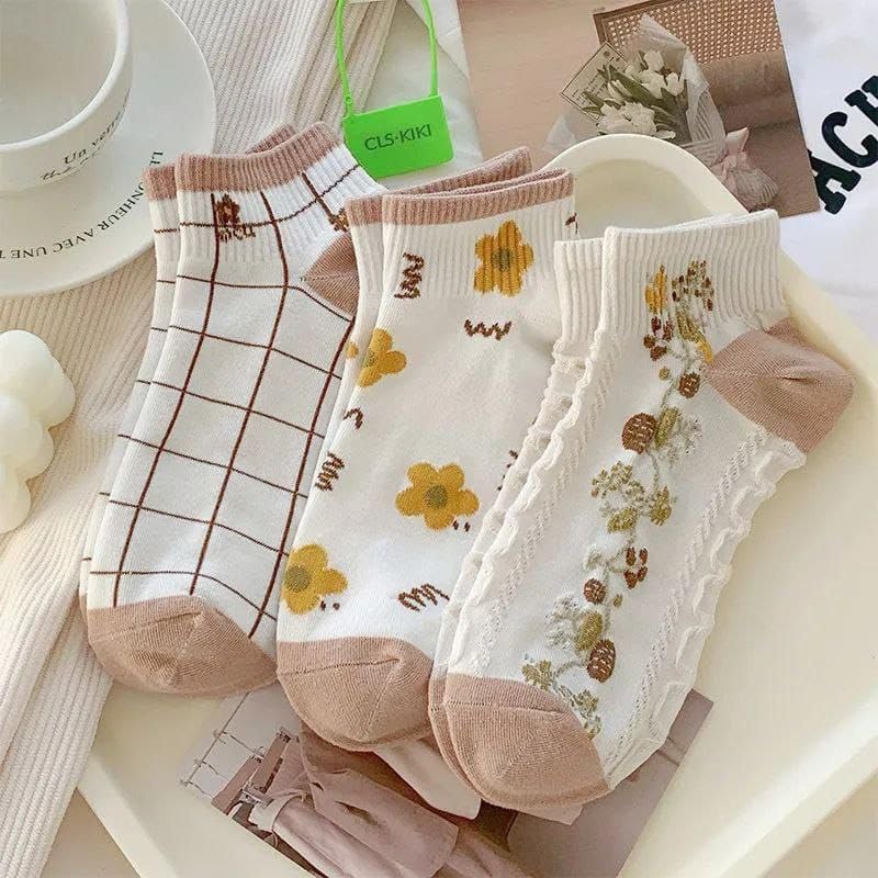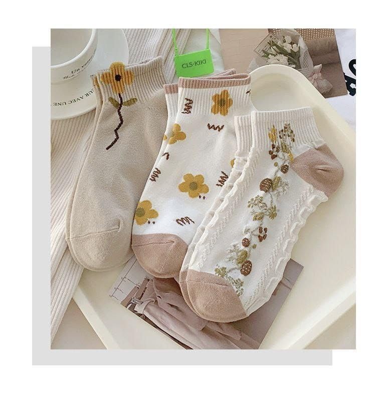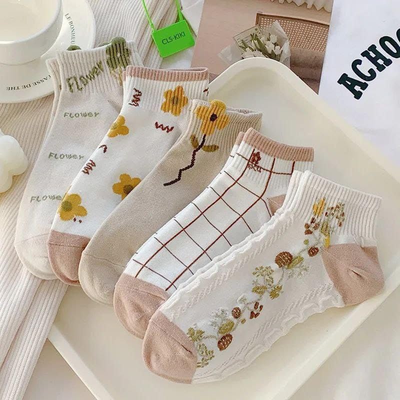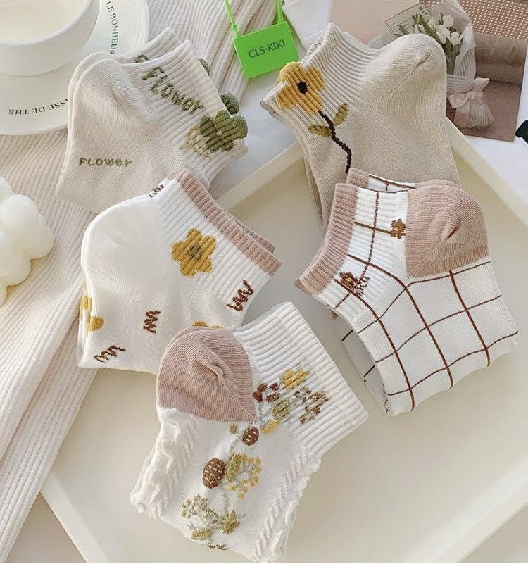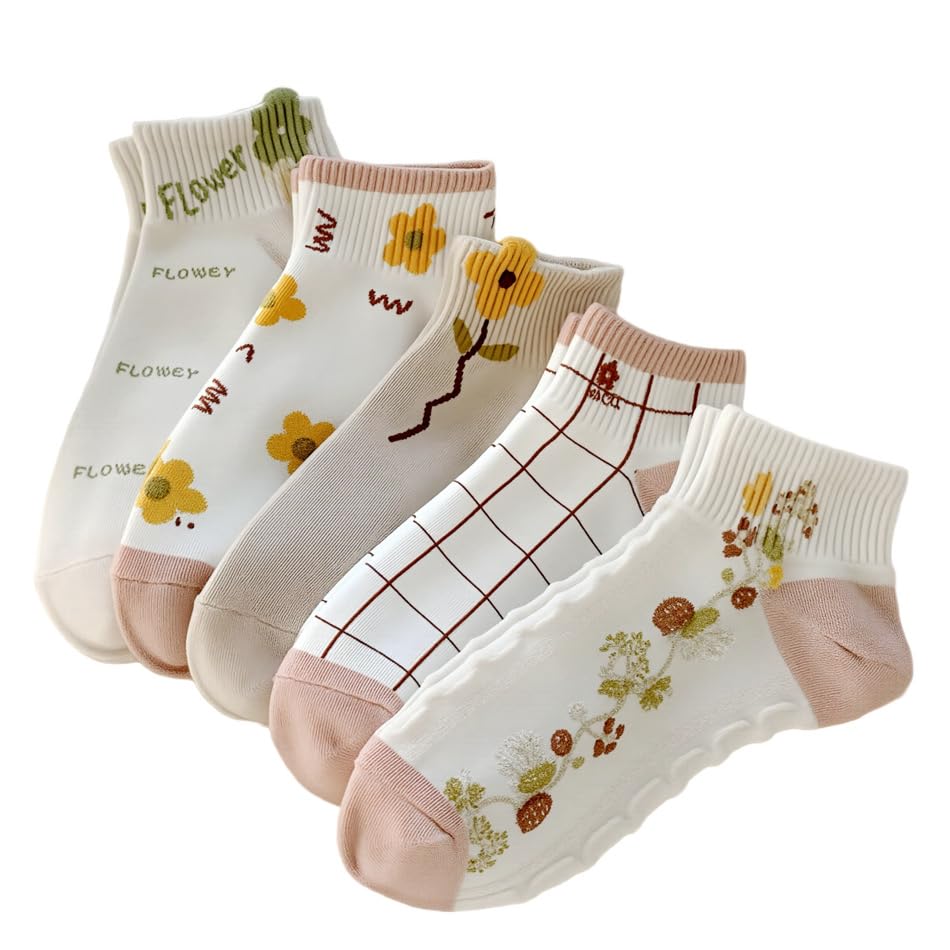Generic - طقم شرابات بطول الكاحل ، مصنوعة من القطن بتصميات رقيقة للنساء مريحة جدا للقدم 5 ازواج + 1 هدية مقاس حر من 35 الي 43
