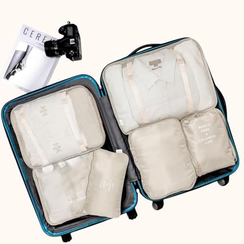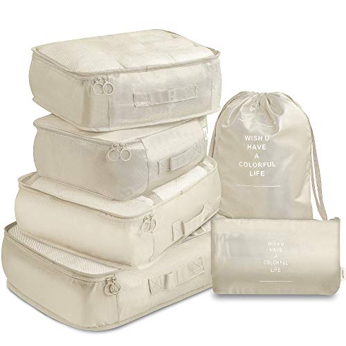 VAGREEZ - مجموعة شنط مكعبة لتعبئة وتنظيم الأمتعة، خفيفة الوزن لحملها في شنطة السفر من فاجريز، 6 قطع، بيج