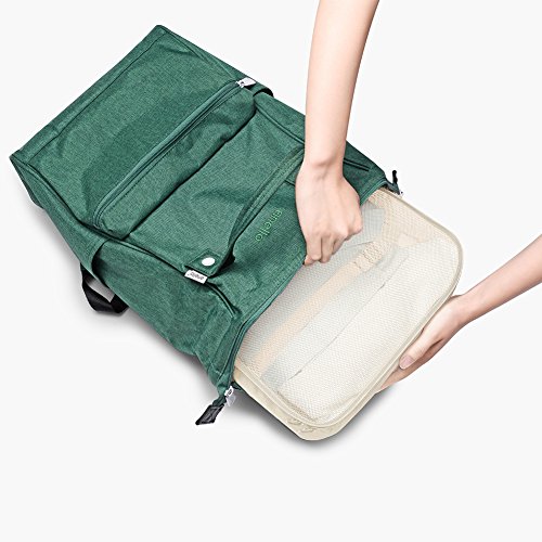 - 6 قطع بأحجام مختلفة من شنط التنظيم المُكعبة وأكياس التعبئة: تتضمن المجموعة الواحدة 3 مقاسات من منظمات السفر المكعبة (كبير: 10 إلى 12 قميص، متوسط: 7 إلى 9 قمصان، صغير: 5 إلى 6 قمصان)، شنطة ملابس داخلية لحمالات الصدر، شنطة للغسيل وشنطة بسوستة. من السهل عليك تعبئة شنط السفر خاصتك جيدًا في شنطة السفر مقاس 53 إلى 64 سم (21 إلى 25 بوصة) وتعبئة شنطة الحمل وشنطة الظهر للرحلات القصيرة أو الطويلة.