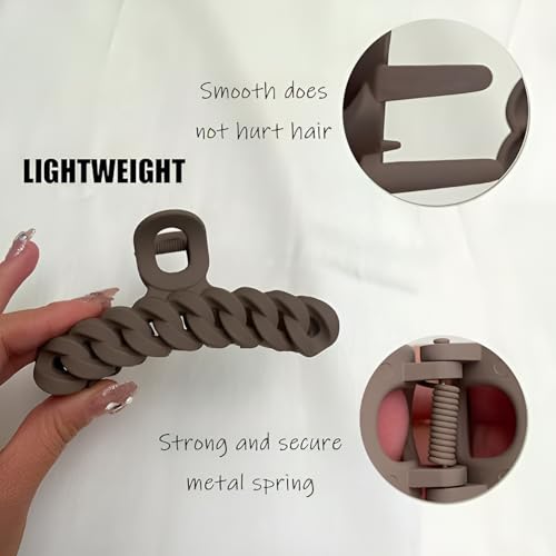 PACTIV - باكتيف 4 قطع مشابك شعر بتصميم سلسلة مضفرة، مشابك مخلبية كبيرة 4.1 انش، مشابك شعر غير لامعة للشعر الكثيف، مشابك شعر كبيرة لطيفة للنساء (محايدة) عدد 1 (عبوة من 4 قطع) متعددة الالوان