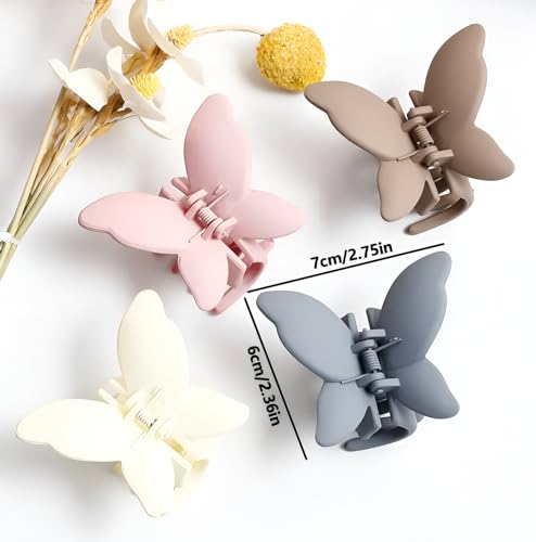 PACTIV - مشابك شعر على شكل فراشة مقاس 7 سم من 4 قطع منباكتيف، مشابك شعر على شكل فراشة للنساء، مشابك شعر مخلبية للشعر السميك والرفيع، اكسسوارات شعر على شكل فراشة