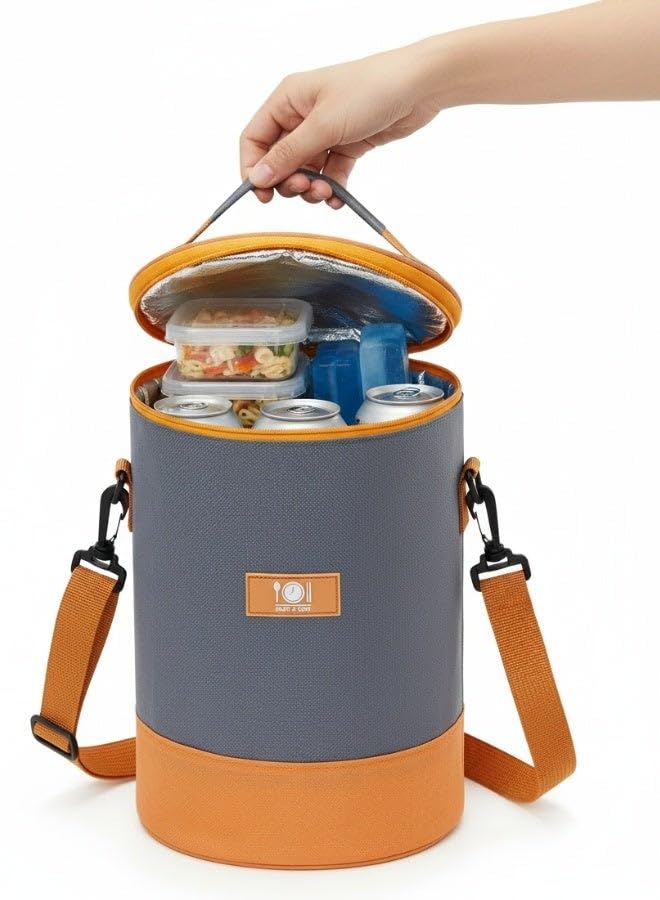 Generic - شنطة غداء مبطنة ومعزولة ومقاومة للماء - شنطة ذات سعة كبيرة على الطراز الياباني للحفاظ على الطعام والمشروبات ساخنة او باردة - شنطة غداء مانعة للتسرب، رمادي/برتقالي