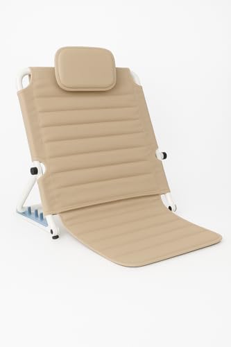 Generic - مسند ظهر مبطن قابل للطي من بلاستيك بي في سي مع قماش بمسامات للتهوية، متين وقابل للتعديل 6 درجات (بيج)
