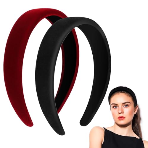 Generic - طوق شعر مبطن ومنتفخ للنساء، أربطة رأس عريضة إسفنجية غير قابلة للانزلاق من الساتان، أكسسوارات شعر مريحة وناعمة للنساء والبنات، أحمر غامق وأزرق غامق، قطعتين