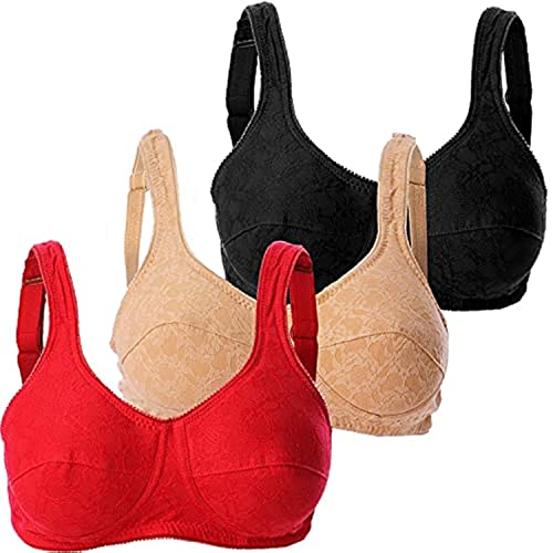 Lasso - حمالة صدر مثلثة سادة مبطنة بحمالات قابلة للتعديل للنساء، 3 قطع 36، 2725611891073، من لاسو، خامات متعددة