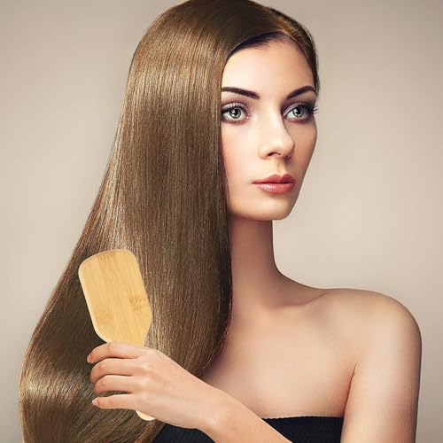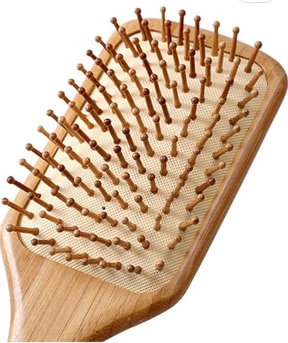 Generic - فرشاة شعر عريضة من الخيزران الطبيعي النقي لتعزيز الدورة الدموية ومنع تكون الكهرباء الساكنة عند تمشيط الشعر