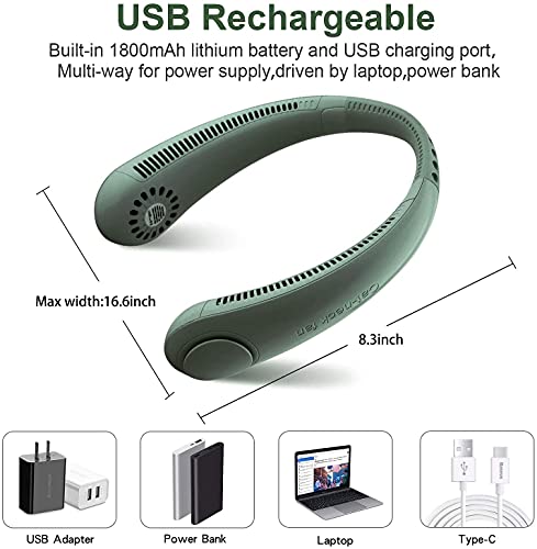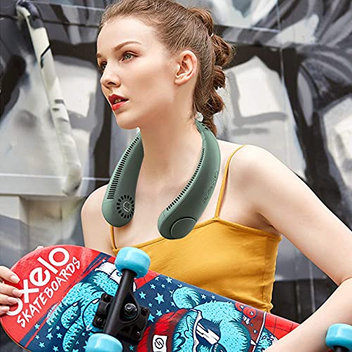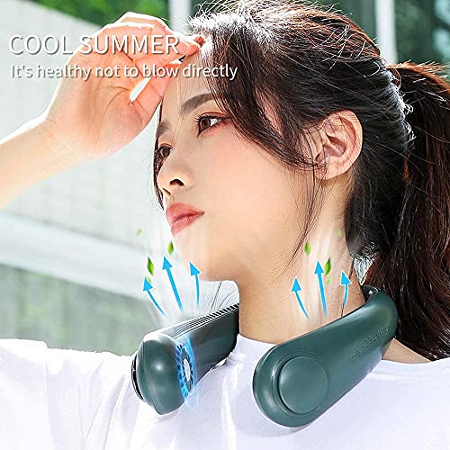 PADOM - مروحة على شكل طوق للرقبة لتوفير تبريد شخصي بزاوية 360 درجة، محمولة قابلة لإعادة الشحن عبر USB مع 3 سرعات للهواء،للسفر والمكاتب والرياضة (باللون الأخضر)