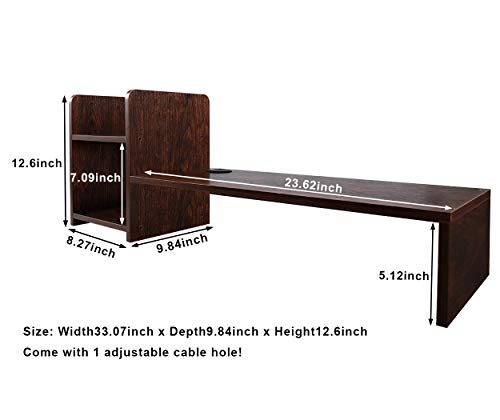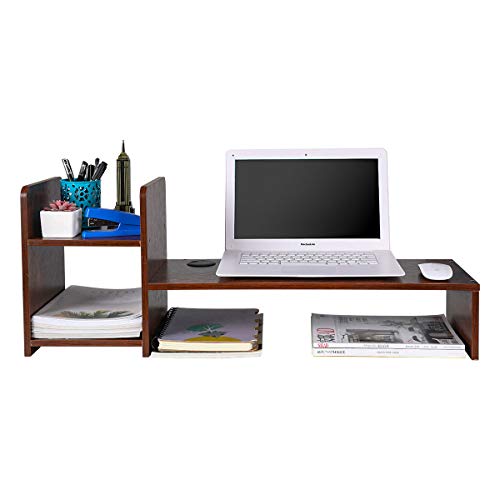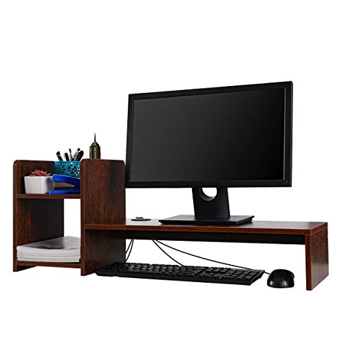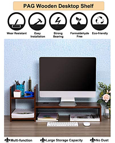 PAG - حامل خشبي لرفع شاشة الكمبيوتر وتنظيم المكتب والاستخدام كرف للكتب والطابعة للمنزل/المكتب/المدرسة من باج، بني ريترو