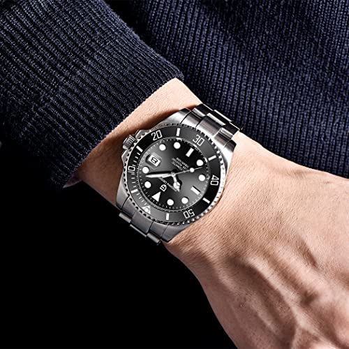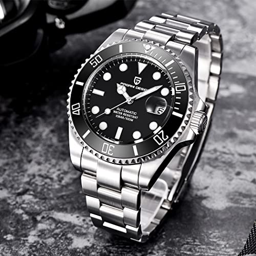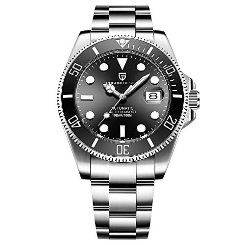 LACZ DENTON - ساعة من باجاني ديزاين للرجال، بمينا سوداء وسوار فضي، عرض تناظري