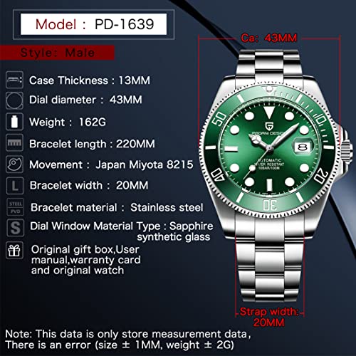 RollsTimi - ساعة ميكانيكية فاخرة للرجال من باجاني ديزاين بإطار سيراميك 42 ملم وحركة يابانية مصنوعة من الستانلس ستيل وزجاج ياقوتي مقاومة للماء حتى عمق 100 متر