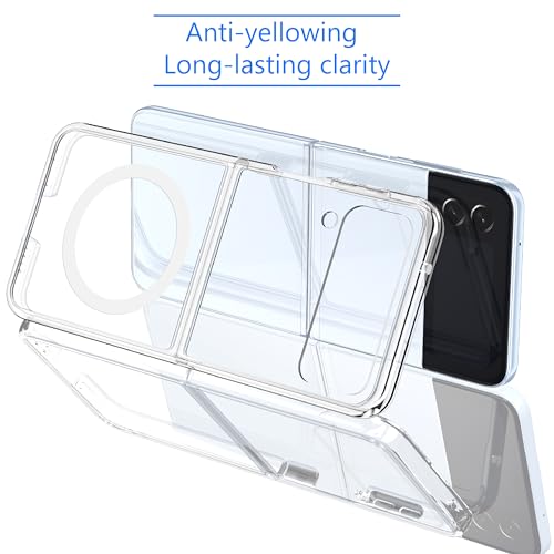 PAIDAAR - جراب مغناطيسي شفاف كريستالي لموبايل سامسونج جالاكسي Z فليب 3 متوافق مع شحن ماج سيف بمغناطيس قوي لا يصفر، بحماية من الدرجة العسكرية 3 م، جراب رفيع شفاف من بايدار