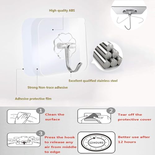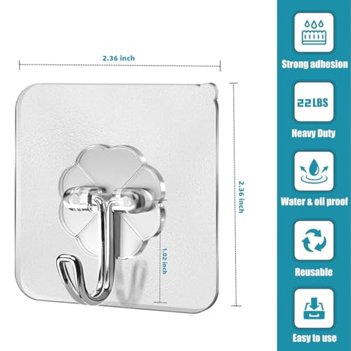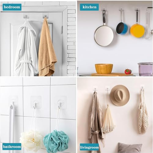 PAIDASHU - خطافات ذاتية اللصق من بايداشو، 25 قطعة من خطافات الحائط اللاصقة شديدة التحمل، بحد أقصى 10 كجم، شماعات لاصقة بدون مسامير، للاستخدام في الحمام والمطبخ وللفوط وغيرها، شفاف، معدن