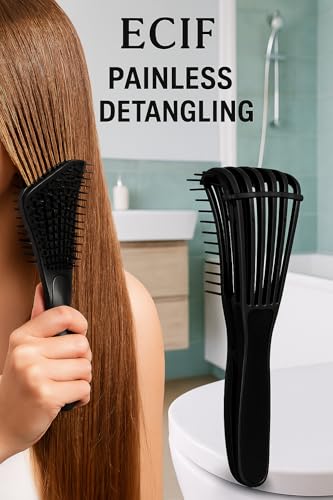 ECIF - فرشاة فك تشابك الشعر بدون ألم للنساء والرجال والأطفال، فرشاة للشعر المجعد والناعم - مناسبة للشعر الرطب والجاف، ألوان متنوعة (عبوة من قطعتين)
