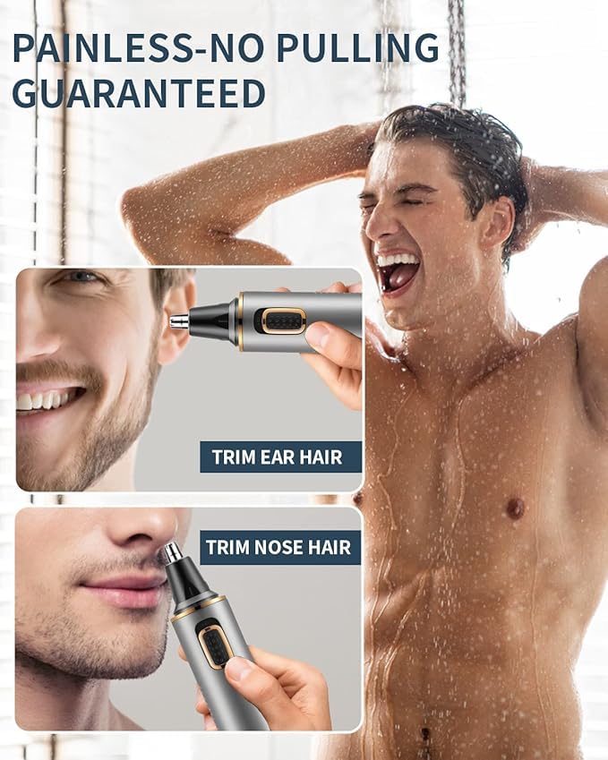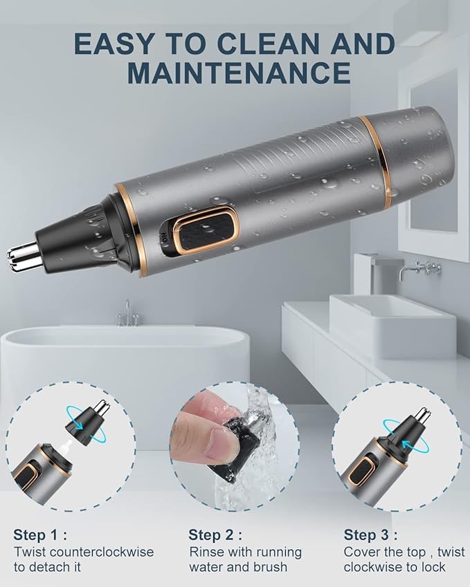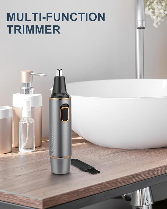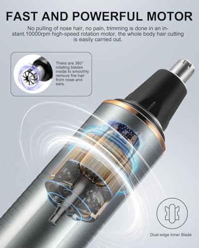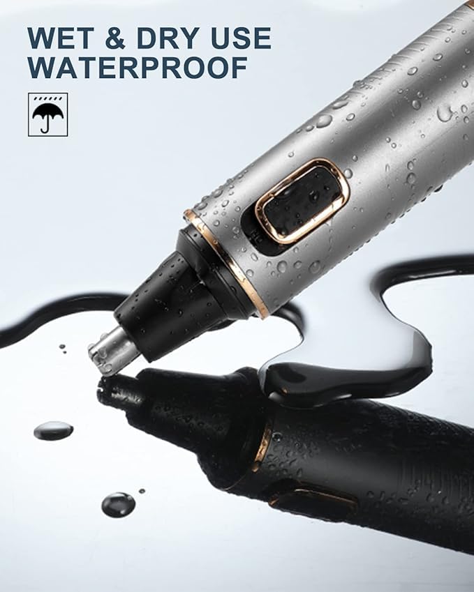 AREYZIN - ماكينة تشذيب شعر الأنف للرجال، قابلة لإعادة الشحن مع شفرات مزدوجة الحواف، وبطارية (متضمنة) تعمل مع مقاومة للماء IPX7 لسهولة التنظيف، رمادي ذهبي