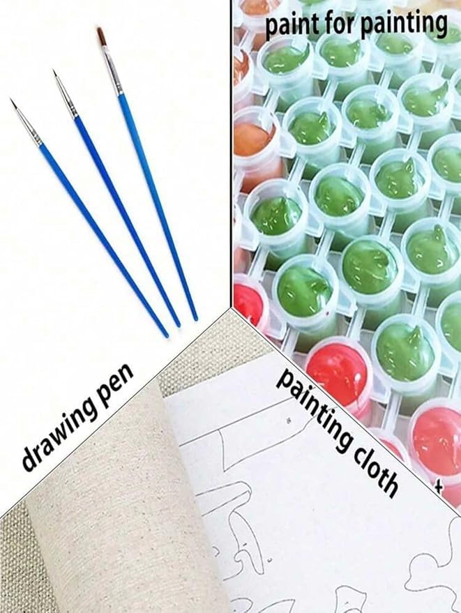 - مجموعة كاملة: تتضمن قماش مطبوع مسبقًا (40 × 50 سم)، وطلاء أكريليك مرقم، وفرش تفاصيل، وإكسسوارات معلقة لتجربة فنية شاملة