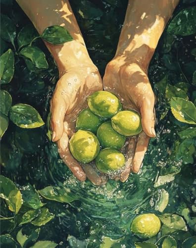 Generic - مجموعة الرسم حسب الارقام، مجموعة رسم يدوية للكبار، تصميم حمضيات منعش، قماش 40 × 50 سم، مجموعة كاملة مع فرش وطلاء وشماعة ودليل مرجعي