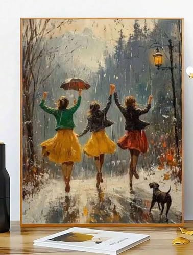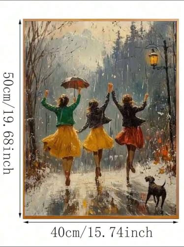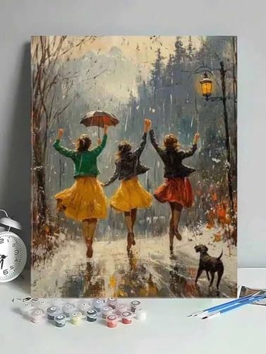 Generic - مجموعة الرسم بالارقام، مشهد الرقص في المطر، مجموعة فنية قماشية 40 × 50 سم مع فرش وطلاء اكريليك، لوحة يدوية للمبتدئين والكبار، ديكور حائط