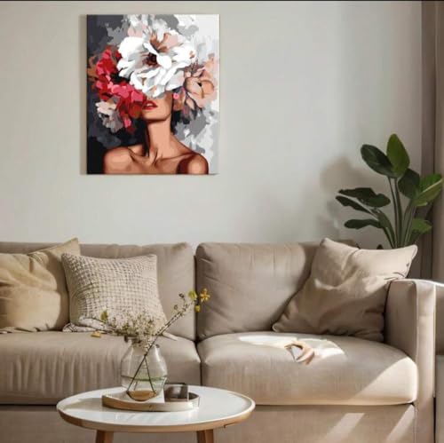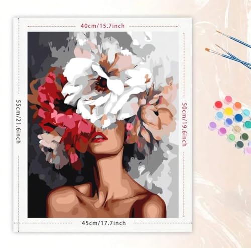 Generic - مجموعة الرسم بالارقام للبالغين، صورة تجريدية للمرأة، مجموعة لوحات قماشية ذاتية الصنع، 40 × 50 سم، مع فرش وألوان اكريليك، لوحة فنية جدارية غير مؤطرة