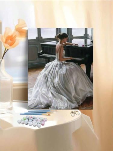 Generic - مجموعة الرسم بالارقام، مجموعة فنية ليدي ات بيانو 40 × 50 سم، مع فرش وطلاء اكريليك