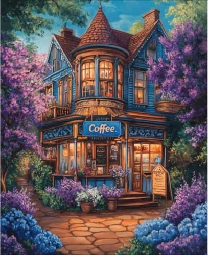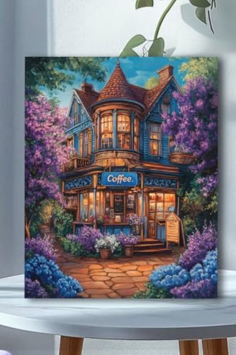 Generic - مجموعة رسم بالارقام، لافندر لين كوفي هاوس، 40 × 50 سم، مجموعة فنية كاملة يمكنك صنعها بنفسك مع قماش وطلاء وفرش